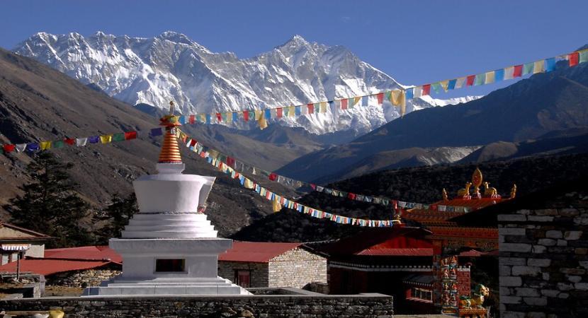 Approx walking time: 5hrs. The trail leads along a winding path with great views of Mt. Everest, Nuptse, Lhotse, Ama Dablam, and a close-up view of Thamserku. You will come to a busy place called Sagnasa, and in this area, there is a much higher chance of seeing the beautifully coloured Danphe pheasant (Impeyan Pheasant) the national bird of Nepal, and the elusive musk deer, and sometimes even a herd of Himalayan Thar (mountain goat). From Sagnasa, the trail descends to the Imjatse River at Phungitenga (3250m), a small settlement with a couple of teahouses and a small Royal Nepalese Army barracks amid the alpine woods of mostly silver fir blue pines, rhododendron, and some magnolia and birch trees. At Phungitenga there's an interesting prayer wheel propelled by water, from the nearby streams. The walk from here is strenuous for an hour on a winding trail through shaded woods until a small religious monument of prayer stones covered with rhododendron leaves and junipers is reached. From here the walk is uphill for another hour, with views of Thamserku and Kangtenga (which from this angle looks more like an icy Sphinx or a big cat). As you reach Tengboche, you will be assured by a religious Buddhist gate that the walk for the day is almost over. Tengboche is one of the most beautiful places in the Himalayas, and the first thing that you will see is a big Ghompa (monastery), before a large field with campsites and teahouses, lodges beneath the peak of Ama Dablam with Everest looming above, and the Nuptse wall to the North with Mt. Lhotse and Lhotse Shar to the North East and many more peaks all around you.